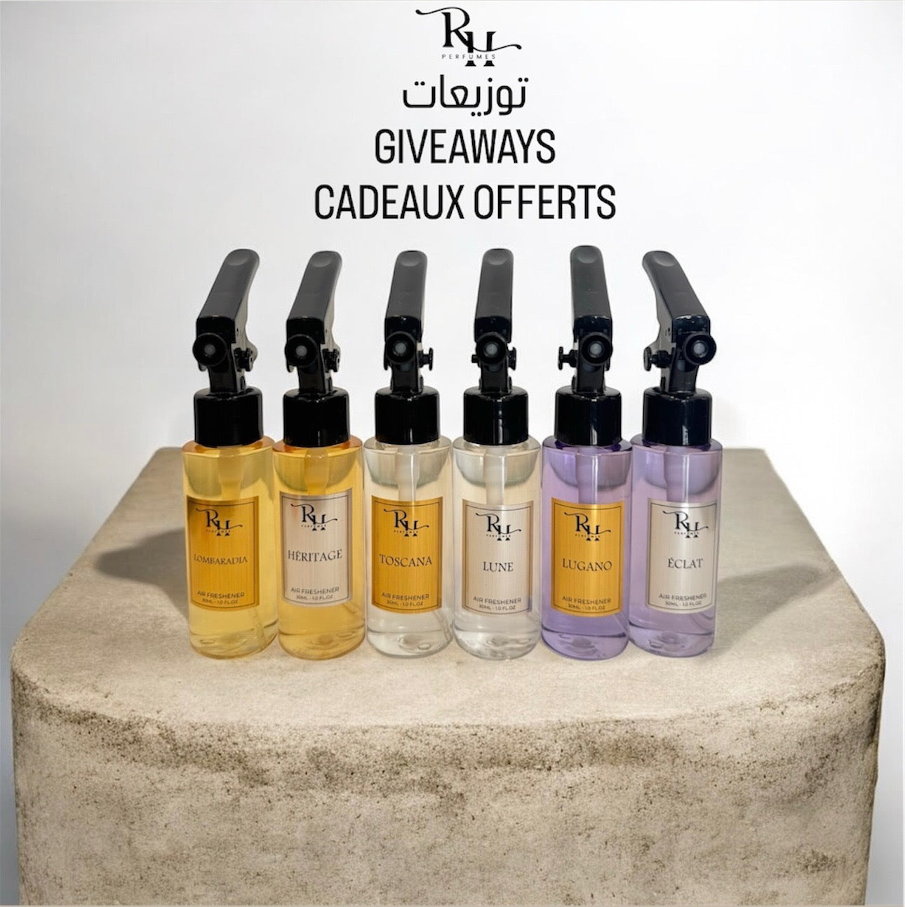 12 pieces of 30 ML Air fresheners from all the collection Lombardia ,Toscana, Lugano , Eclat, Lune and Heritage